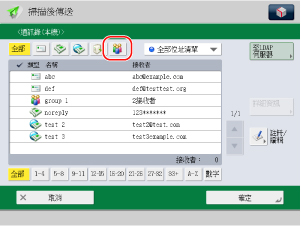 若在通訊錄中註冊了包括多個電子郵件位址的組,可以透過選擇該組作為接收者以同時傳送到該組中包括的所有電子郵件位址。