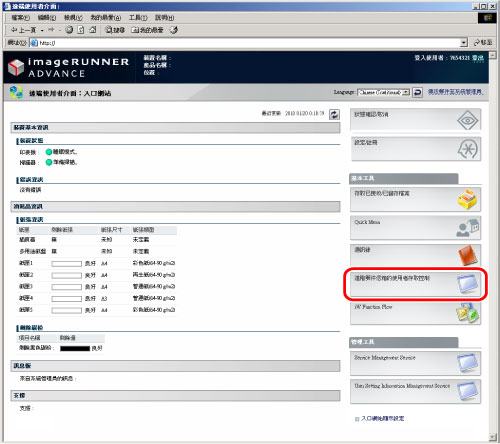 根據機器的型號和安裝的選購產品,螢幕可能有所差異。