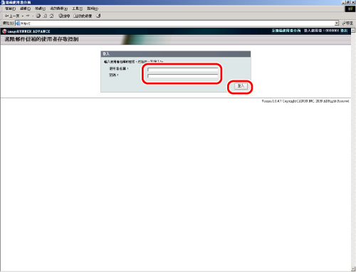 啟動「遠端使用者介面」→在網路瀏覽器上輸入以下URL→按一下[管理員登入]。
