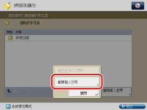 (設定/註冊)→[功能設定]→[儲存/存取檔案]→[進階郵件信箱設定]→[允許創建個人空間]。