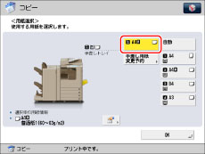 手差し用紙のデフォルト設定が登録されているときは、登録されている用紙のサイズ/種類をあらかじめ選択している画面が表示されます。(→手差し用紙のデフォルト設定を登録する)