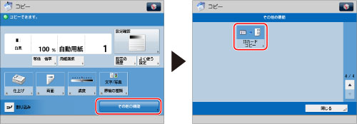 IDカードの表面と裏面を、1枚の用紙に並べてコピーします。