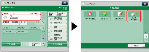 宛先を指定→[その他の機能]→[ジョブ終了通知]を押す