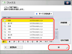 ジョブの終了を通知する宛先を選択→[OK]を押す
