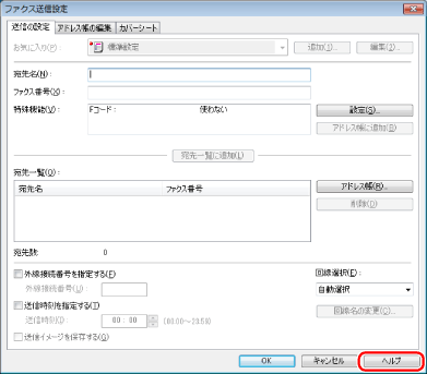 ファクスドライバー画面の[ヘルプ]をクリックすると、ヘルプが表示されます。
