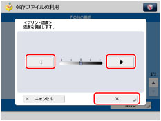 を押してプリントの濃度を調整→[OK]→[閉じる]を押す