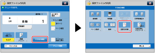 本機能は、アドバンスドボックス、ネットワーク、メモリーメディアに保存したファイルをプリントするときのみ使用できます。