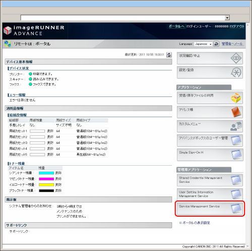 リモートUIポータルページからSMSにログインする場合は、リモートUIに管理者としてアクセスする必要があります。