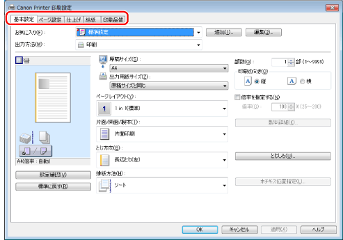 [基本設定]タブには、他タブの設定項目のうち、基本的な機能を抜き出してまとめられています。[基本設定]タブの設定項目は、他タブでも設定できます。