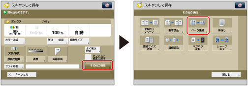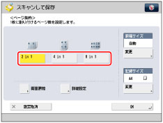 複数の原稿や両面原稿を、1枚の用紙に並べて読み込みます。並べる原稿の数は2枚、4枚または8枚から選択します。両面プリントやレイアウトの順番を設定することもできます。