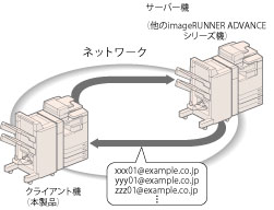 本製品はクライアント機として、ネットワーク上のサーバー機にアクセスして、サーバー機のアドレス帳から宛先を検索/指定できます。