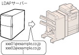 LDAP(Lightweight Directory Access Protocol)サーバーを使って、ネットワーク上のディレクトリーサービスから宛先を検索できます。検索した宛先は送信先として指定したり、アドレス帳に登録したりできます。