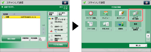 宛先を指定→[その他の機能]→[ジョブ終了通知]を押す