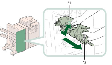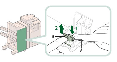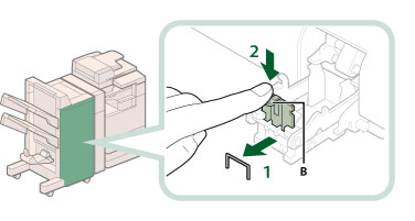 中とじユニットの針づまりの処理を行う前に、製本トレイに排紙された用紙をすべて取り除いてください。