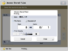 If you want to print a file stored in the machine from a computer or using [Store in Mail Box] of the Copy function with the settings that were set when the file was stored, do not print the file from the Change Print Settings screen. If you print the file from the Change Print Settings screen, the file may not be printed with the same settings that were set when the file was stored.