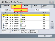 To print the send history for the Fax Activity Report, select [Fax] in the drop-down list. (See "FAX ACTIVITY REPORT TX/RX.")