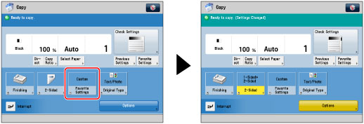If you register [2-Sided] + [2 on 1] in Favorite Settings, the screen is displayed as shown below.