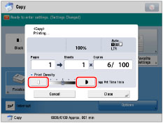If you change the density in [Options], adjusting the density during copying may not have any effect on the output.