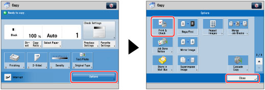 Place your original on the platen glass. You cannot copy using [Print & Check] with the originals set in the feeder.