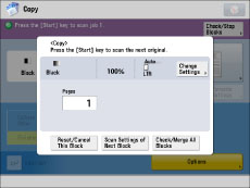 If you want to change the scan settings and scan another batch of originals, press [Scan Settings of Next Block] and repeat the procedure from step 4.