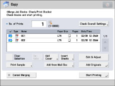 To cancel the Merge Job Blocks mode with other copy modes, press [Cancel Merging].