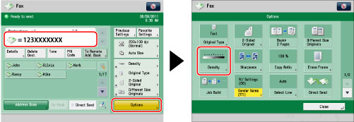 You can adjust the density level to match the darkness of your original before sending a fax. You can also adjust the background density for originals such as coloured paper.
