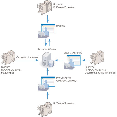 Documents imported with imageWARE Scan Manager DS can be released to "Document Server," which is the core imageWARE series software product utilised in various business situations.
