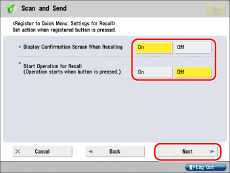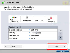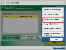 If you select [Device Login Auth. Info.] for [Info. Used for File TX/Browsing Auth.] in [Function Settings] (Settings/Registration), a password for a file destination is not stored in a personal button or a shared button in the Quick Menu. For more information on settings for [Info. Used for File TX/Browsing Auth.], see "Specifying Authentication Method for File Server."