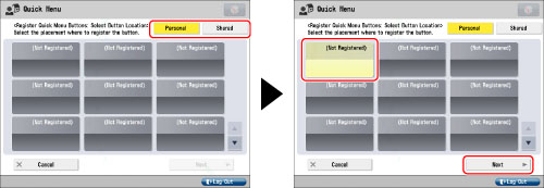 The number of Personal buttons that can be registered may be less than the maximum, depending on the memory usage of the Quick Menu function.