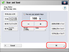 If you set PDF (Trace & Smooth), PDF (Compact), PDF (OCR), XPS (Compact), XPS (OCR), or OOXML as the file format, you can only send at a zoom ratio of [Direct (100%)] or [Auto].