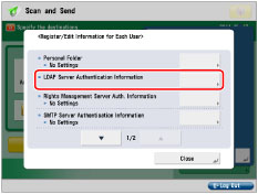 The following settings are required to use different authentication information for each user. Each user is required to register LDAP server and authentication information for accessing the LDAP server by following the procedures below.