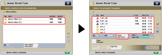 Select the desired memory media → select the desired folder level → press [Folder Operations].