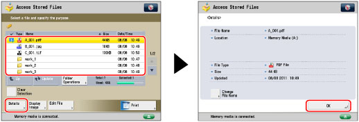You can check the detailed information (file name, location, and date modified) for files in memory media.