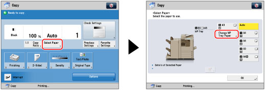 Make sure to load the same paper size and type selected in step 4 into the multi-purpose tray. Copying does not start if paper of a different size or type is loaded.