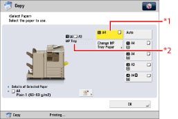 *2 Paper size/type currently loaded in the multi-purpose tray