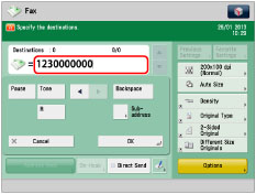 You can specify a fax number using - (numeric keys), , and . You can also specify several numbers in succession, and send the original to several destinations in a single operation (Sequential Broadcast).