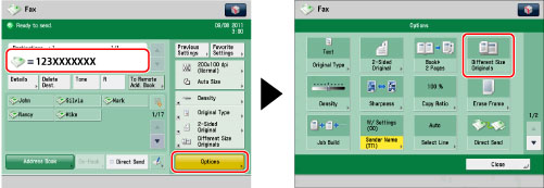 If you send different sized originals, the paper size used to output the faxes on the recipient's machine is the size of the largest document you sent. For example, if you send an A4 and A3 original, they will both be output on A3 paper at the recipient's machine.