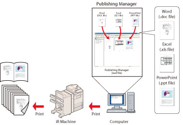 With Publishing Manager, you can create documents efficiently utilizing the features of a Canon machine to the fullest.
