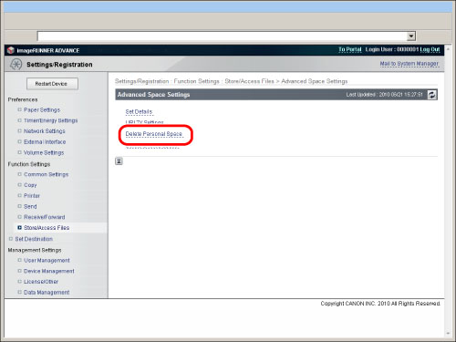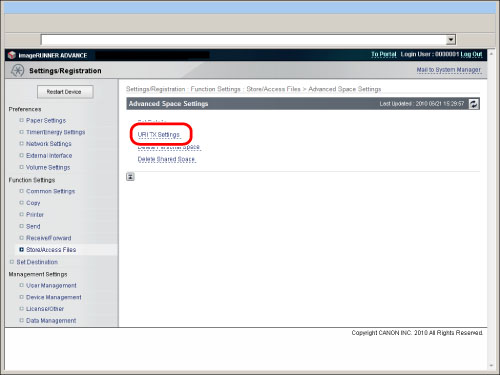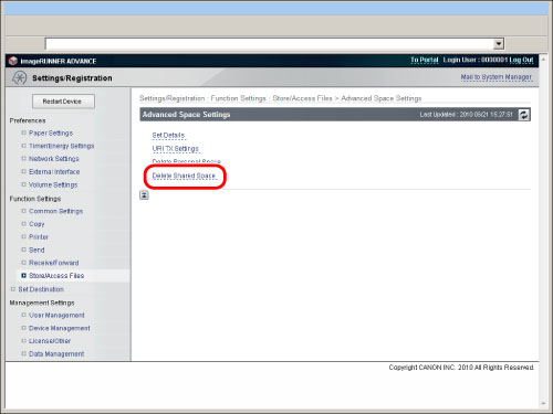 In order to specify settings for the Advanced Space, it is necessary to log in as an administrator.