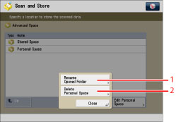 Press to change the directory name of a Personal Space or create a Personal Space.