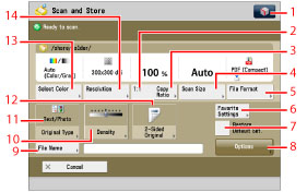 Press to cancel all settings. (The machine restores the default settings for Scan and Store.)