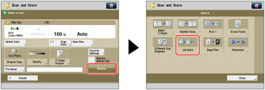 You can change only those settings appearing in [Change Settings] while in the Job Build mode. You need to specify the necessary scan settings in advance.