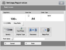 You can register image forms and superimpose them on an output using the Superimpose Image mode in the Copy and Access Stored Files functions. For more information on the Superimpose Image mode, see