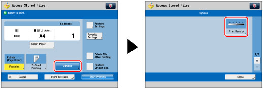If you change the density in [Options], adjusting the density during printing may not have any effect on the output.
