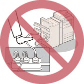 If excessive stress is applied to the connection part of the power cord, it may damage the power cord or the wires inside the machine may disconnect. This could result in a fire. Avoid the following situations:
