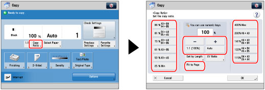 If you set [Auto], you have to select a paper size manually. If you do not select a paper size, the copy ratio is automatically set to match the size of paper loaded in paper drawer 1.
