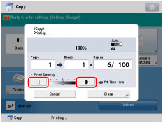 If you change the density in [Options], adjusting the density during copying may not have any effect on the output.