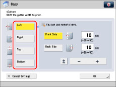 You can choose to only create a gutter on the back side of a copy. This enables you to copy originals that already have a gutter in the 1-Sided