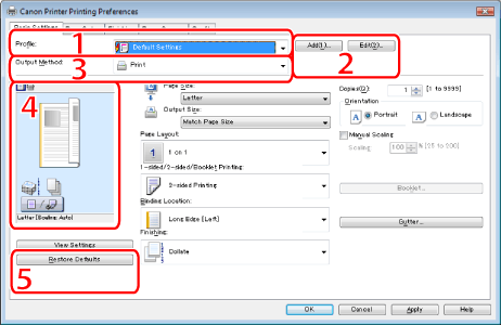For instructions on how to display the printer driver screen, see "Printing" or "Configuring the Default Print Settings."