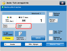 Si l'alimentation de papier est effectuée à partir du plateau multifonctions pour la tâche en cours, le papier pour la tâche suivante peut être sélectionné à partir de [Modifier pap. ds plat. MF]. (Voir "Réservation d'une tâche d'impression avec le plateau multifonctions".)